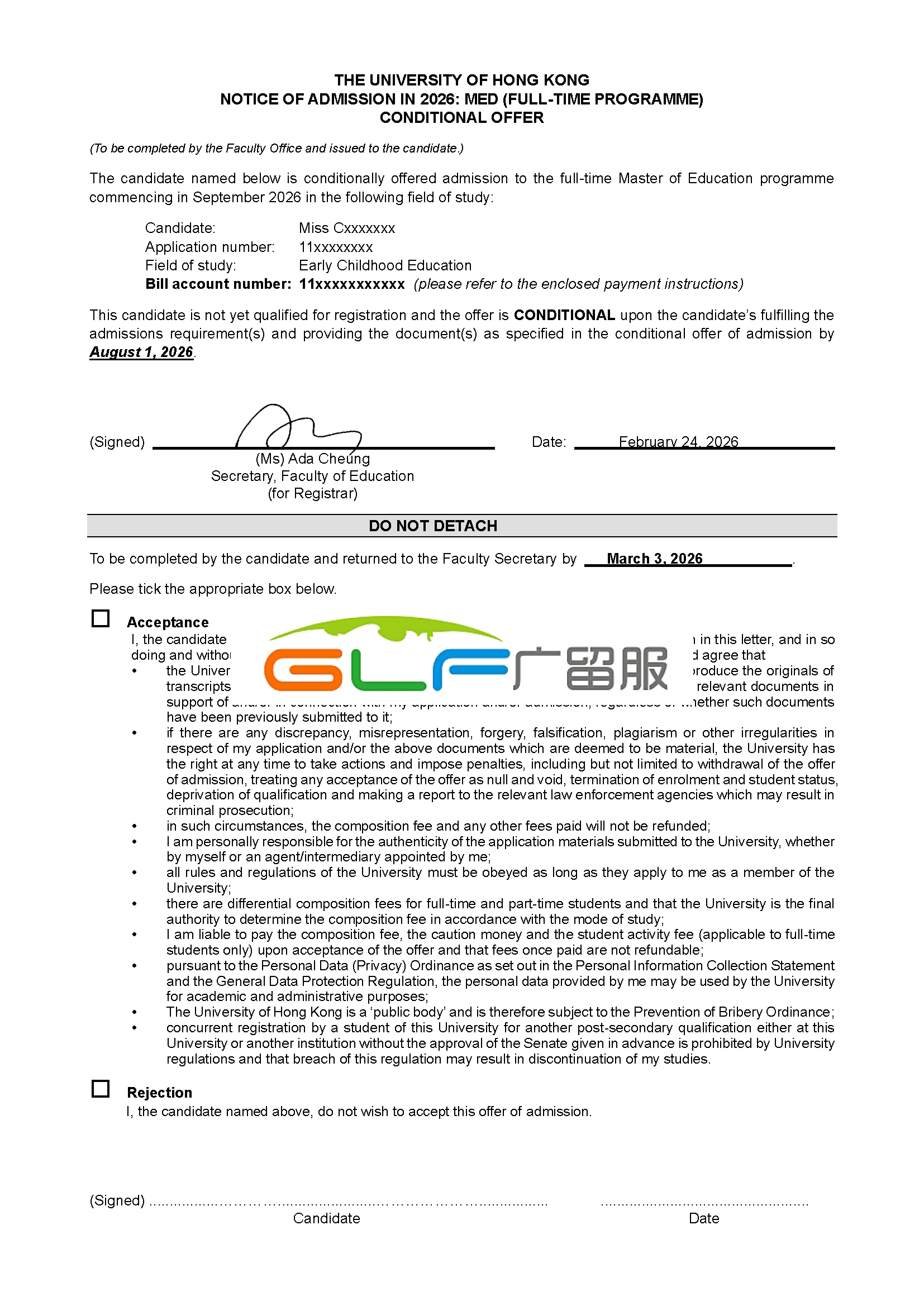 C同学是波士顿大学大三学生,在广留服资深顾问的帮助下顺利获得香港大学Master of Education 2026年秋季入学录取。
