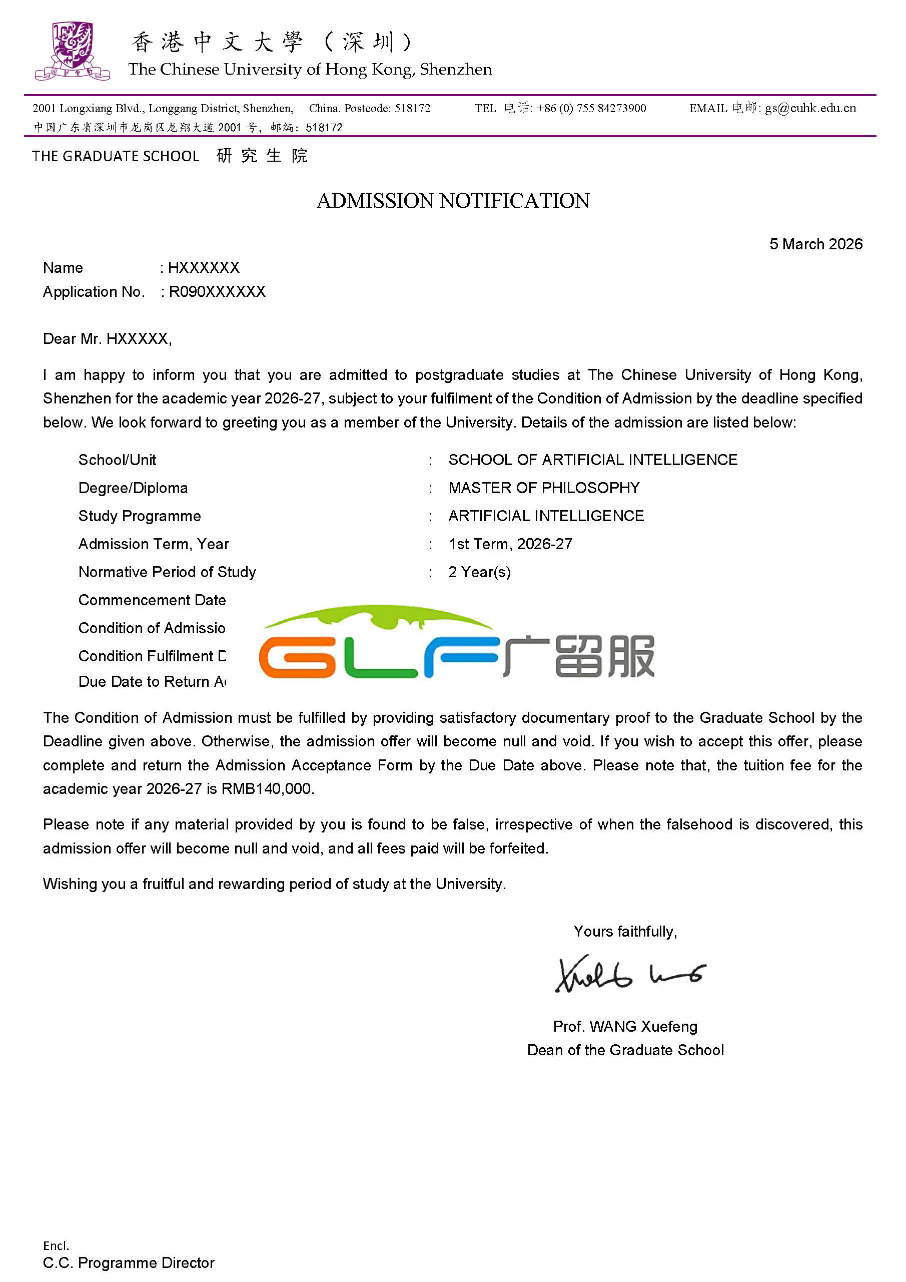 H同学获得香港中文大学(深圳)人工智能研究型硕士录取